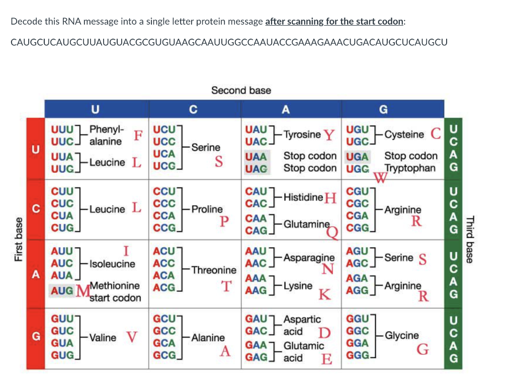 Solved Decode This Rna Message Into A Single Letter Protein Chegg Com